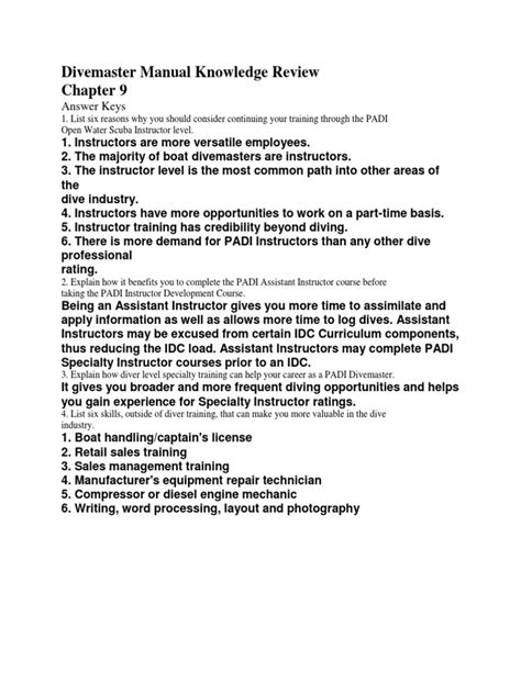 Online PDF DIVEMASTER KNOWLEDGE REVIEW ANSWERS Library Binding ManyBooks